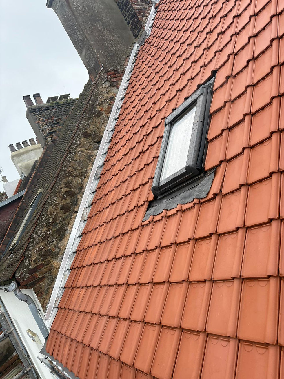 Rénovation de toiture en fibrociment, remplacement par bac acier avec isolation de 40 et pose de 3 vélux adaptés au bac acier.